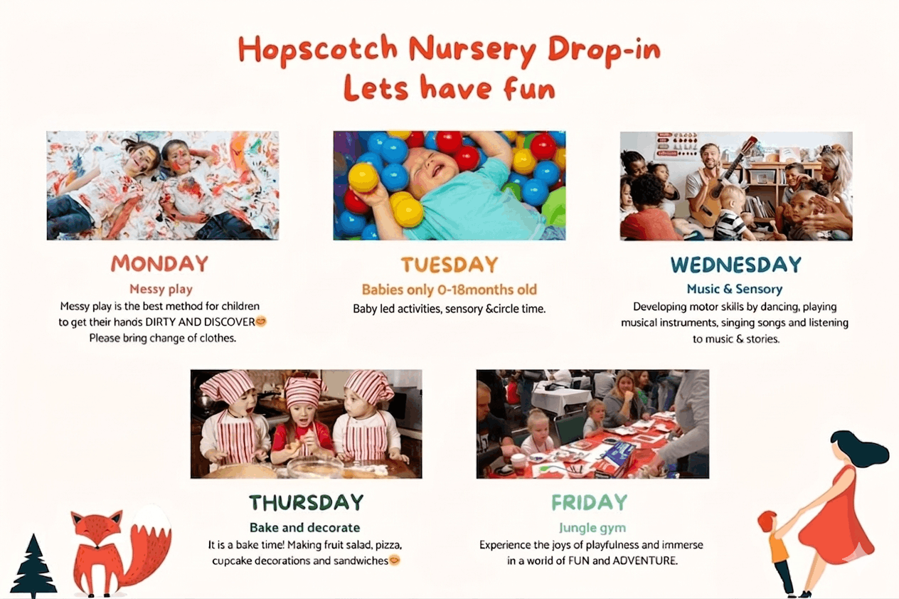 The drop in consists of 3 rooms of activities & access to our large landscaped garden.